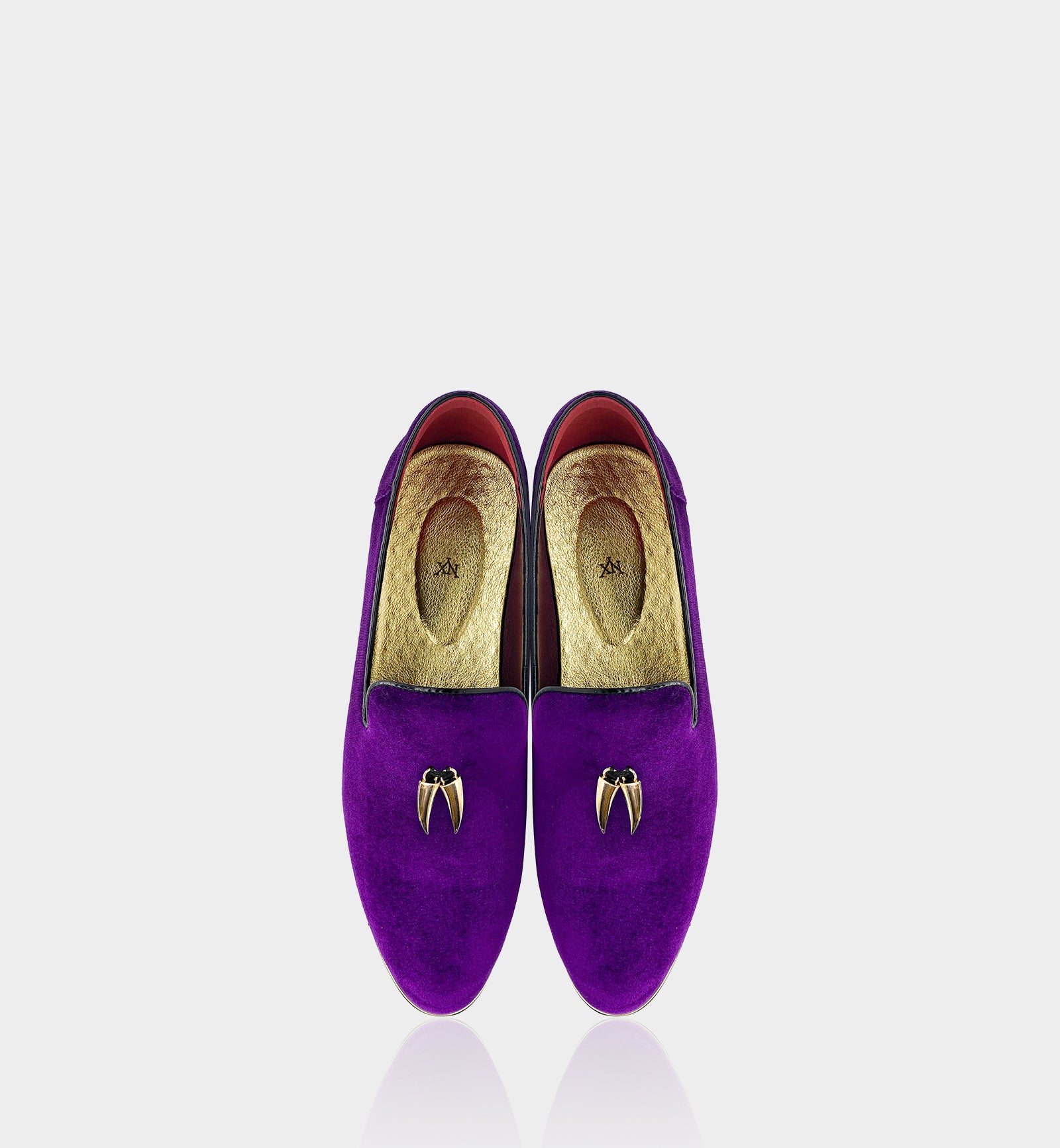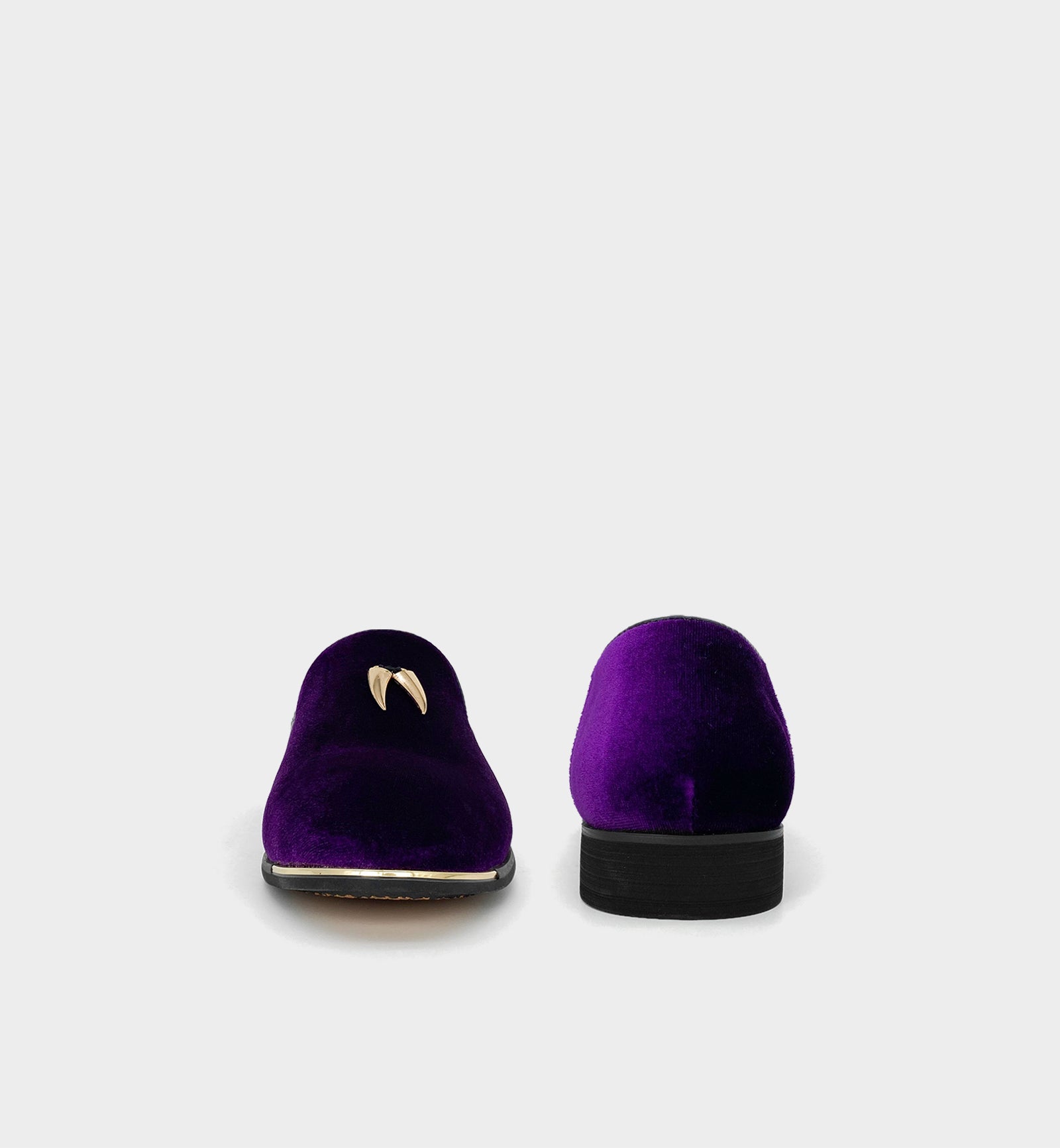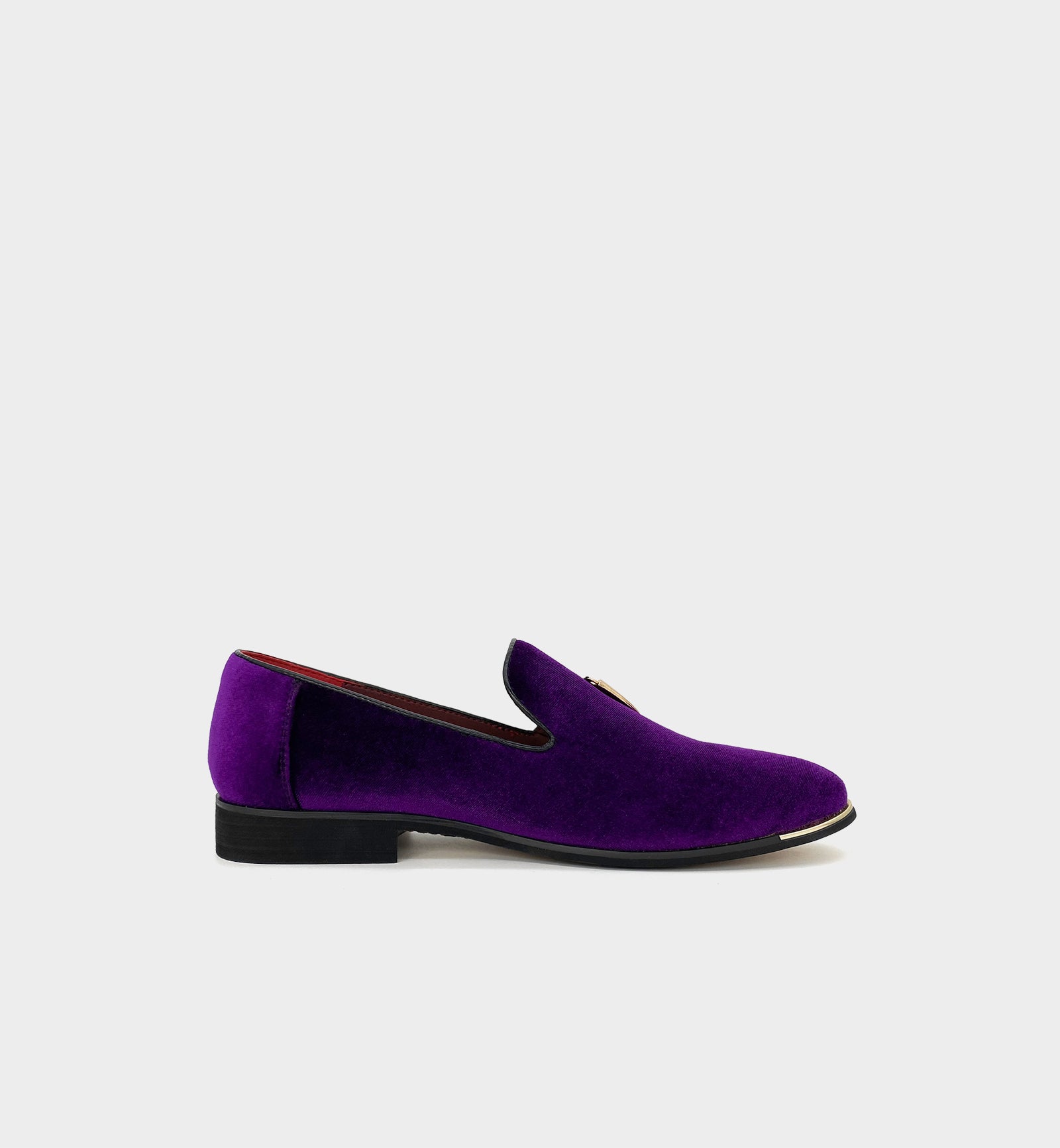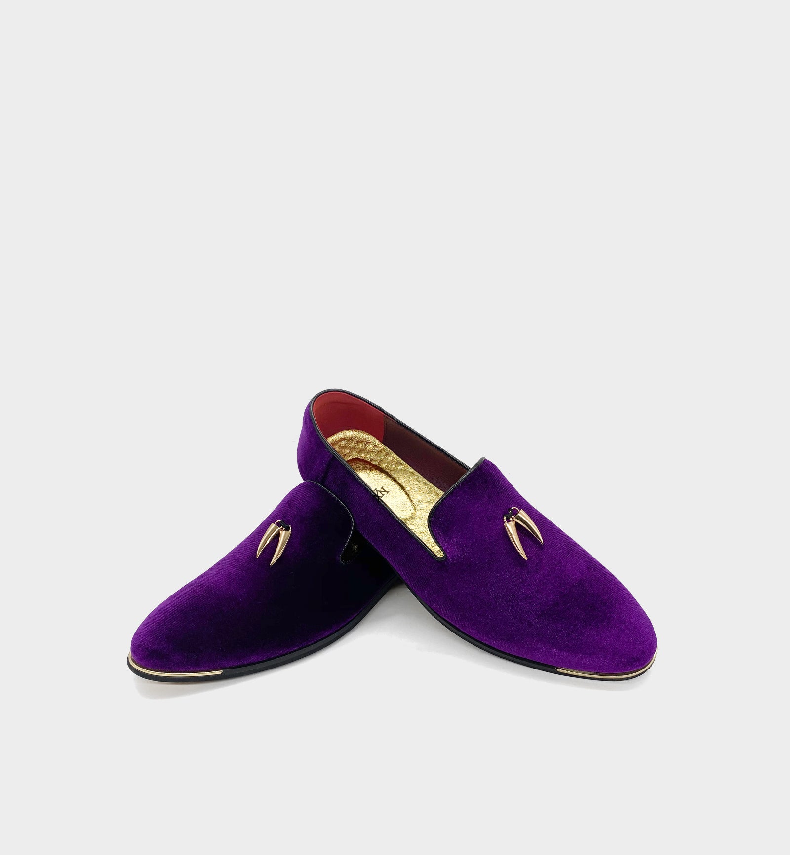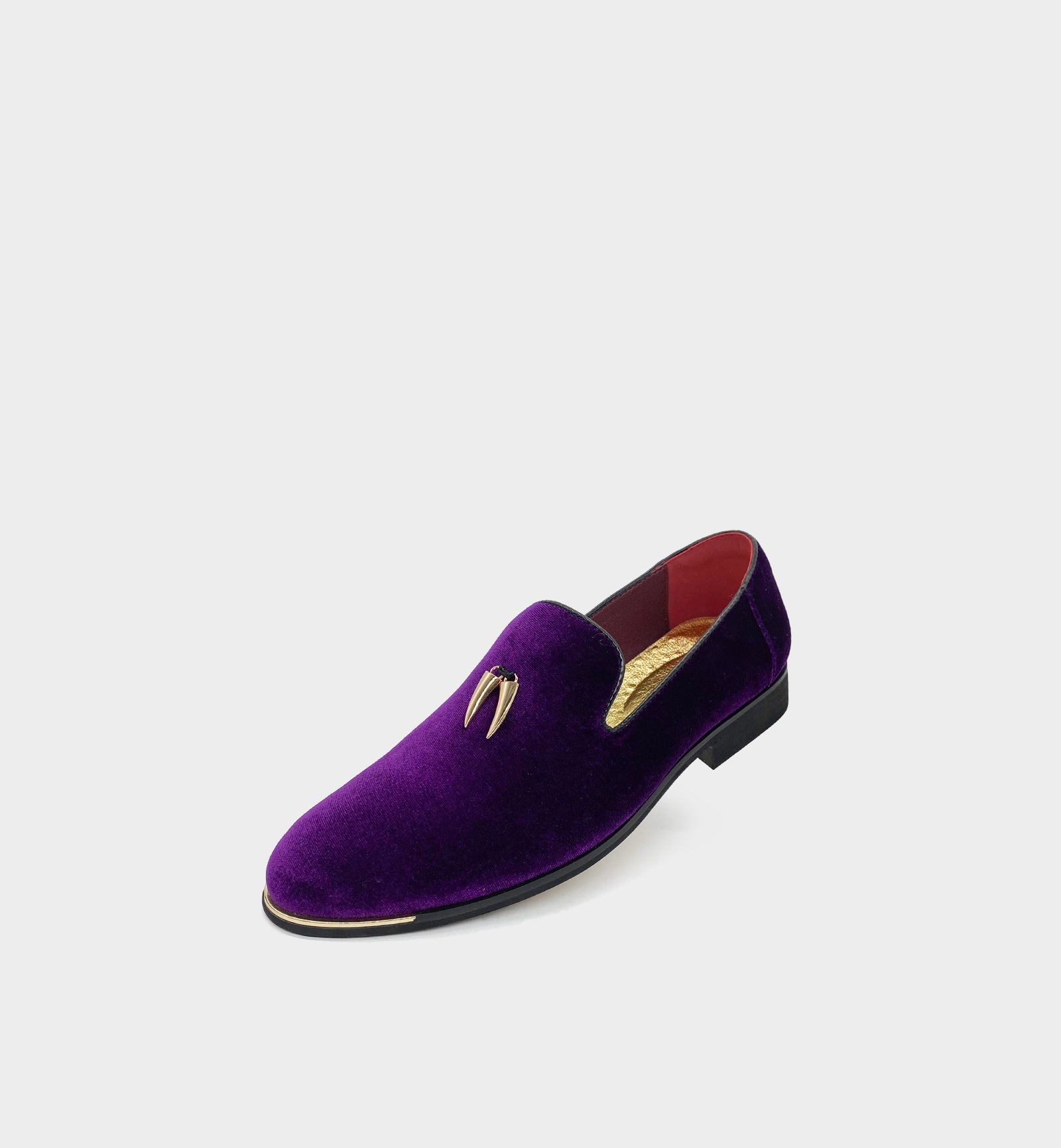 Upgrade version of the 「CHILILOAFER」 collection — crafted from ultra-soft suede upper, paired with gold chili pendants + toe-protector metal trim, the royal purple & gold colorway blends personalized luxury; the pointed-toe silhouette is sleek and elegant for versatile scenarios. The shoe features a comfortable gold rubber outsole for extended durability and longevity; a low block heel, cushioned heel, and leather lining complete the effortless slip-on style, ensuring all-day comfort. The classic loafer silhouette with toe-protector details stands out in daily commuting, casual wear, parties, holiday events, and nights out — a signature piece of men's personalized high-end practical light luxury.