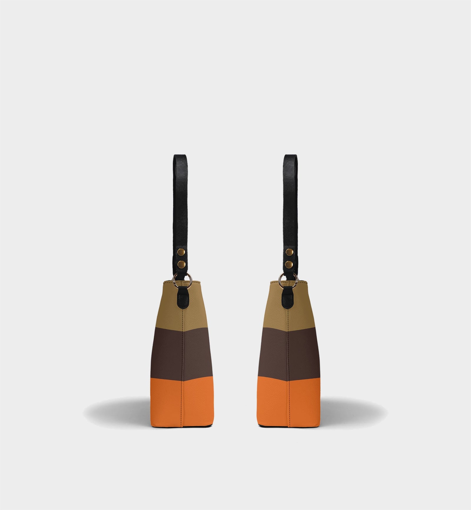 NXY Tri-Color Bucket Bag (Olive/Brown/Orange)