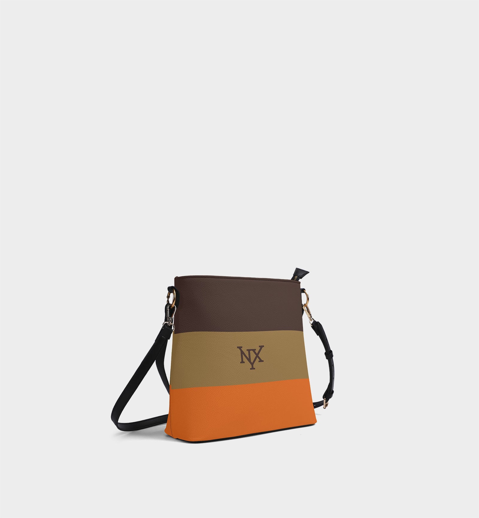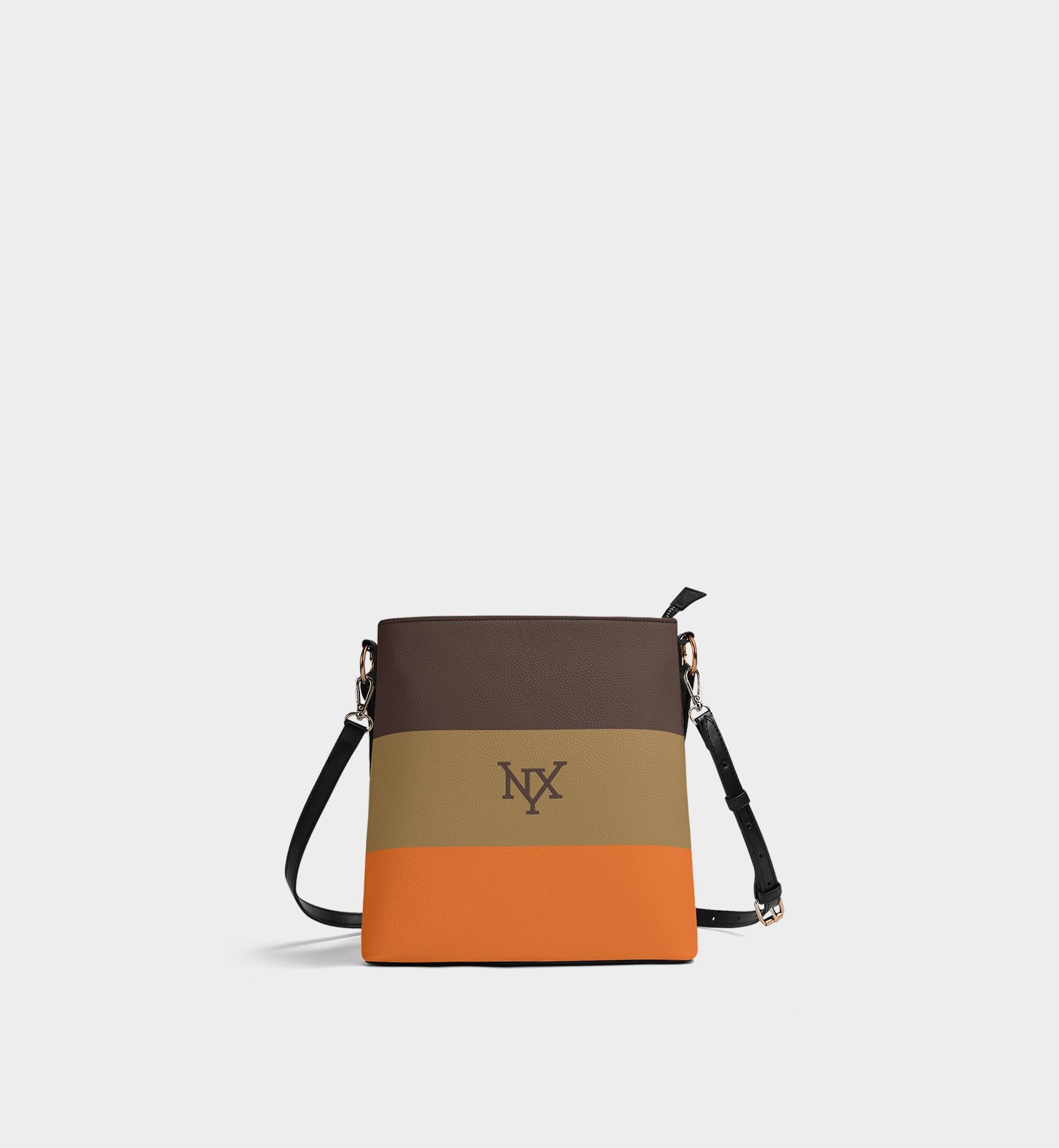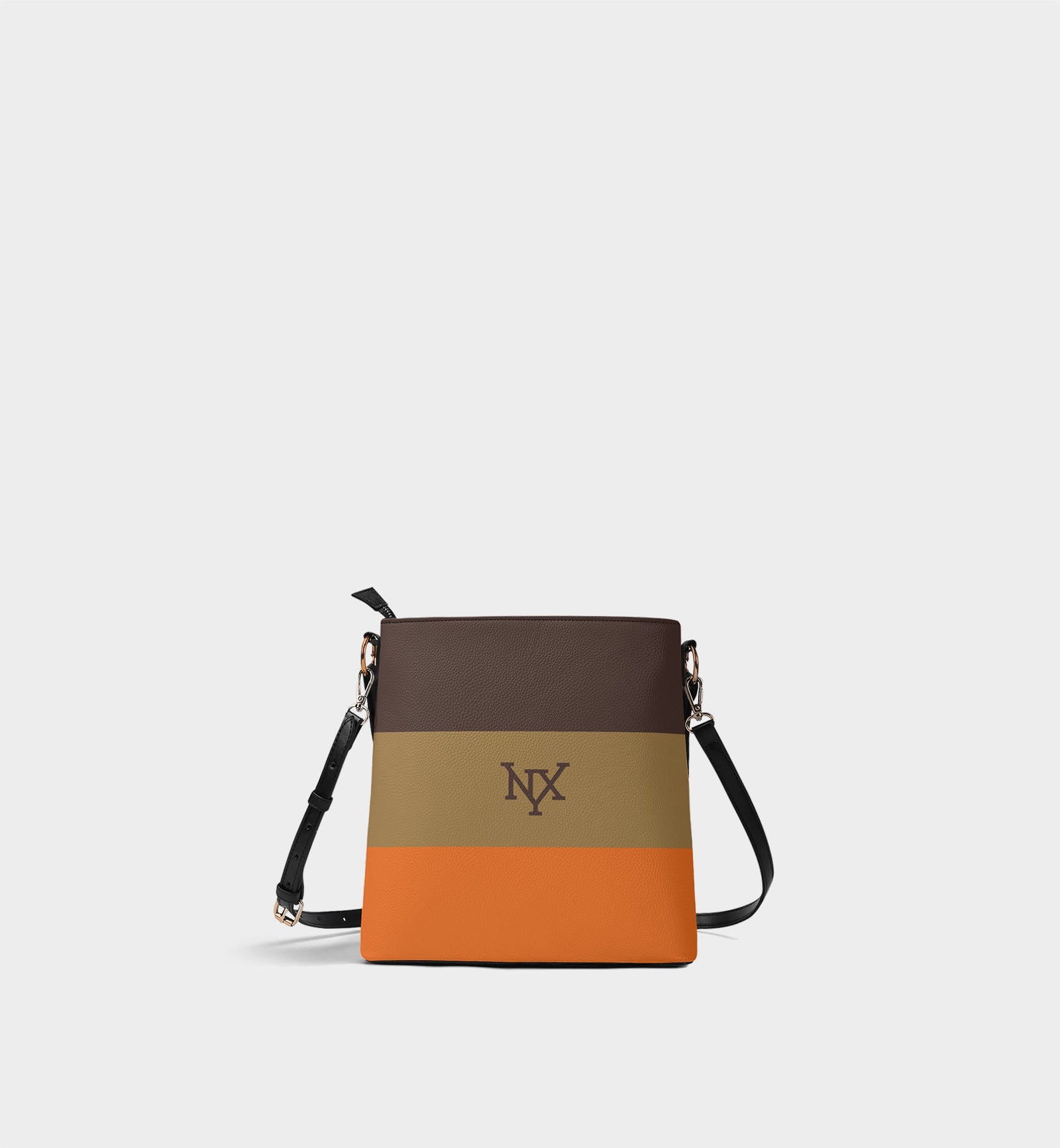 NXY Tri-Color Bucket Bag (Brown/Olive/Orange)