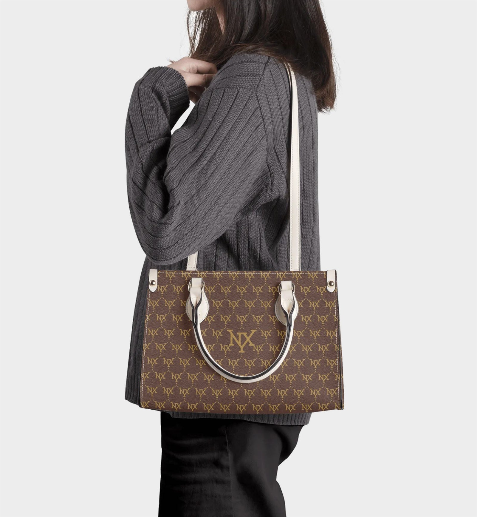 • Brand Identity: A statement luxury piece from NXY, this handle bag features the iconic large logo paired with the signature classic monogram pattern — blending bold brand recognition with timeless elegance.